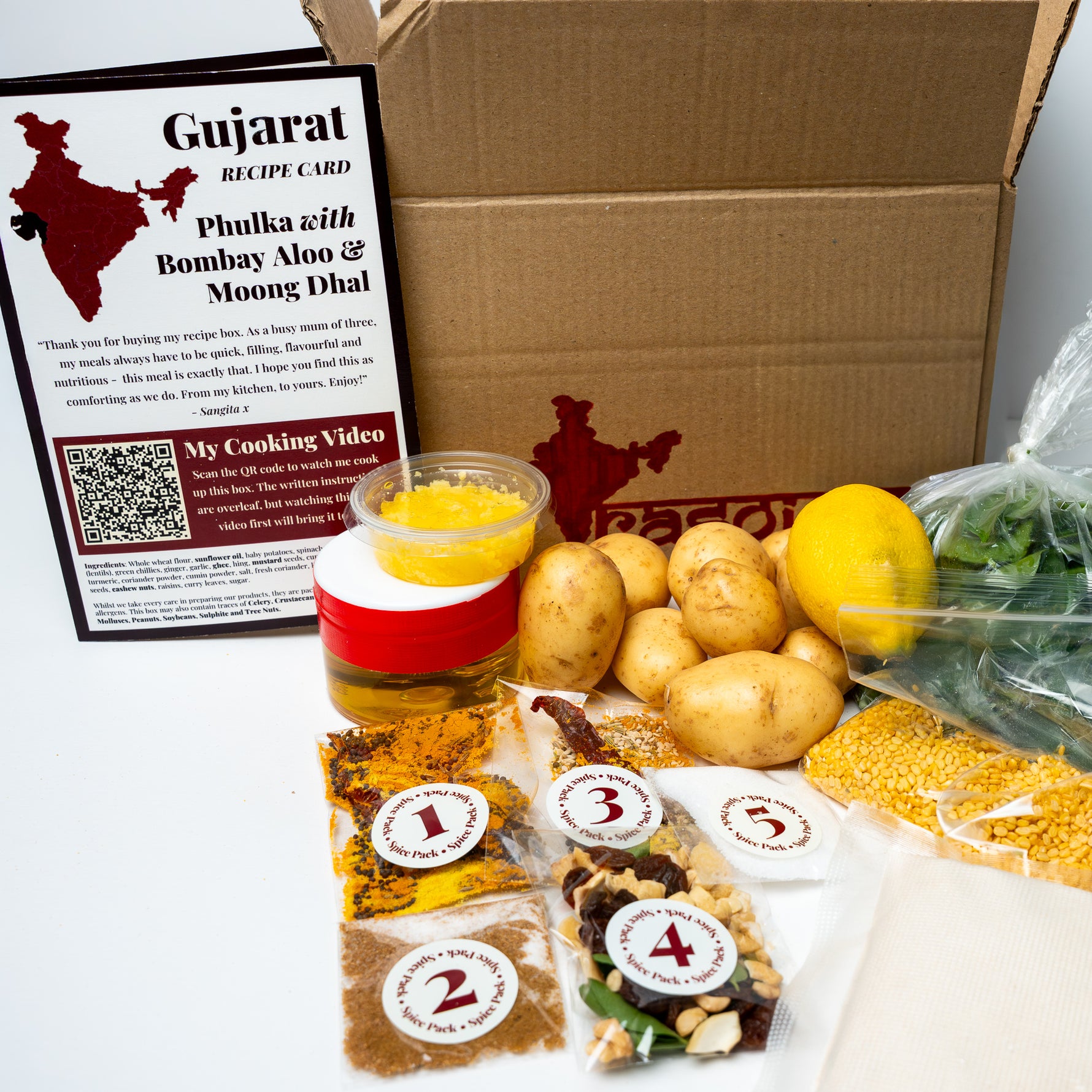 Each box is hand-packed with everything you need: raw, all-natural ingredients including spices, lentils, rice, flour, oil, and temp-controlled dairy and fresh produce. No pre-made pastes, no preservatives, just real food. Every recipe is sourced from a family kitchen, and comes with a step-by-step recipe card and a QR code to watch the home chef cook the dish alongside you.