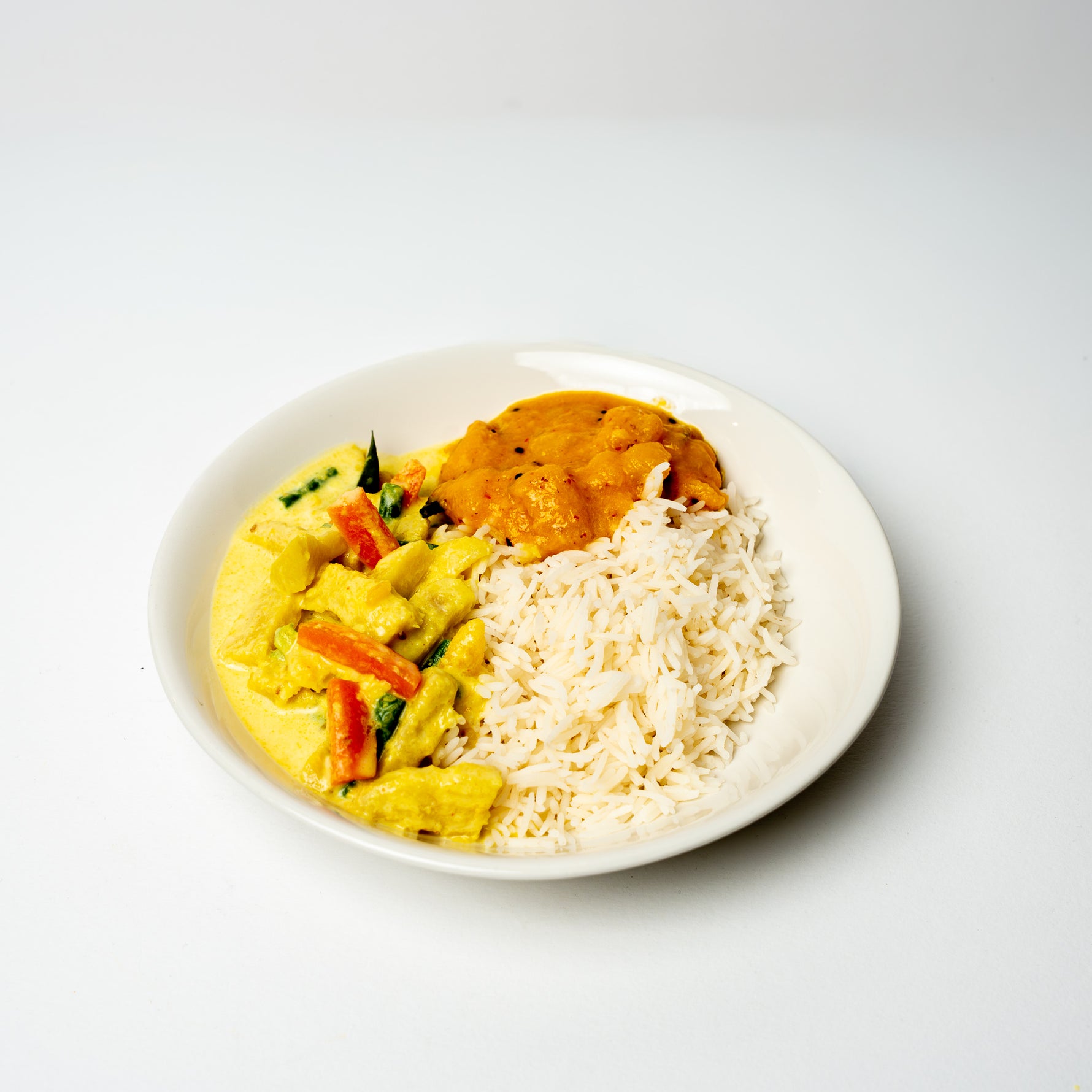 This comforting and aromatic meal combines the richness of a coconut-based vegetable curry, packed with a delightful variety of fresh, crisp veggies like carrots, beans, and yam, all simmered together in fragrant coconut oil. Paired with the tangy sweetness of Mango Pachadi, a mouthwatering mango pulp and coconut chutney, this dish delivers a perfect balance of flavours. Served alongside fluffy basmati rice, it’s a wholesome, flavourful feast that will leave you craving more!