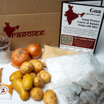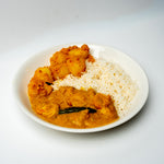 Juicy prawns are simmered in a rich coconut and tamarind gravy, spiced with red chillies, ginger, and green chillies for a fiery, tangy kick. Alongside, enjoy Batata Song - a traditional Goan-style potato sabji cooked with onions, garlic, tamarind, and roasted spices, all brought together with aromatic coconut oil. Served with fluffy basmati rice, this vibrant meal delivers a deeply satisfying and authentic taste of India’s western coast.