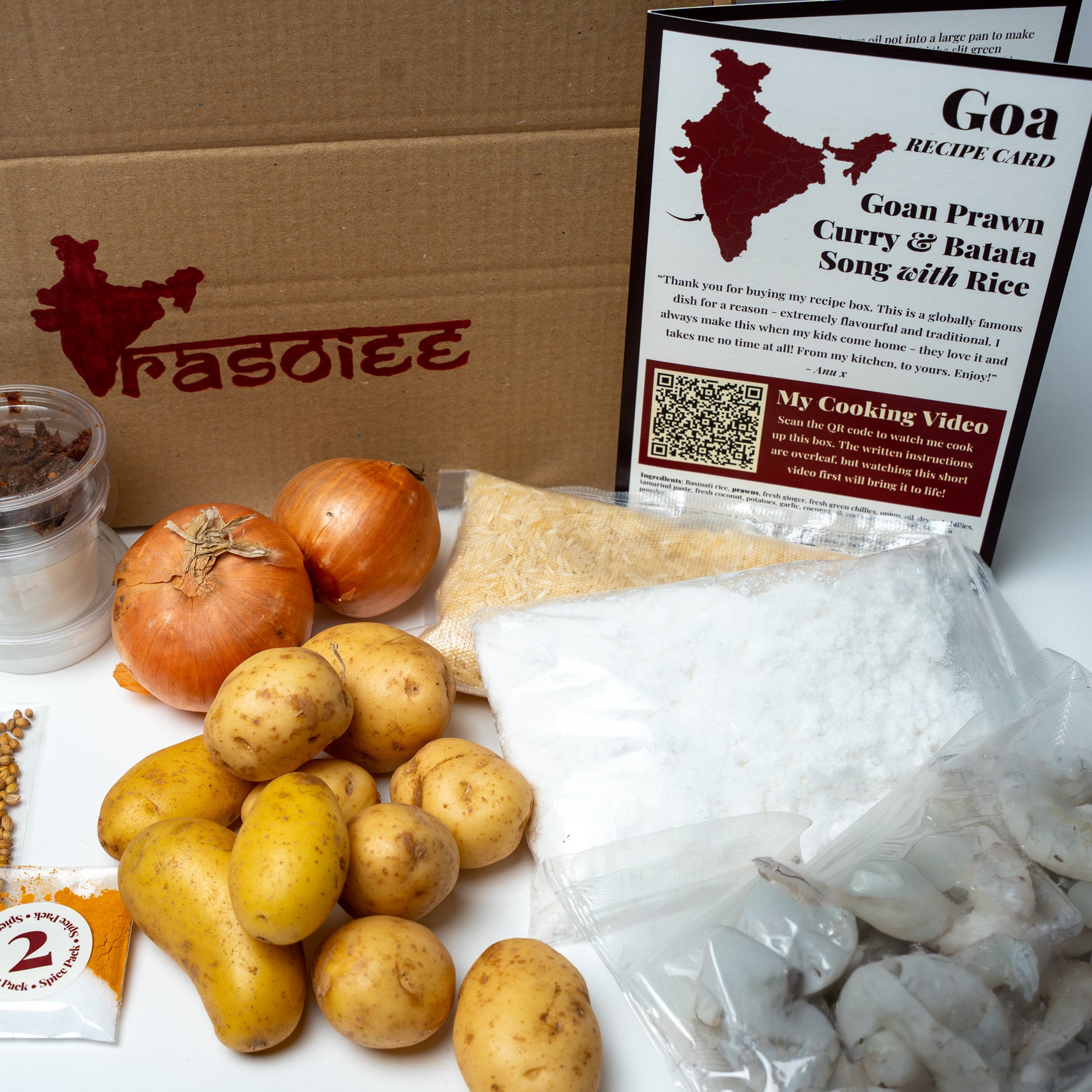Each box is hand-packed with everything you need: raw, all-natural ingredients including spices, lentils, rice, flour, oil, and temp-controlled dairy and fresh produce. No pre-made pastes, no preservatives, just real food. Every recipe is sourced from a family kitchen, and comes with a step-by-step recipe card and a QR code to watch the home chef cook the dish alongside you.