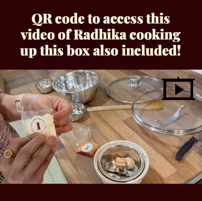 Our meal kits are your passport to cooking authentic Indian meals at home - with no shortcuts and no processed ingredients. Each box is packed with everything you need: raw, all-natural ingredients including spices, lentils, rice, flour, oil, and temp-controlled dairy and fresh produce. No pre-made pastes, no preservatives, just real food. Every recipe is sourced from a family kitchen, and comes with a step-by-step recipe card and a QR code to watch the home chef cook the dish alongside you.
